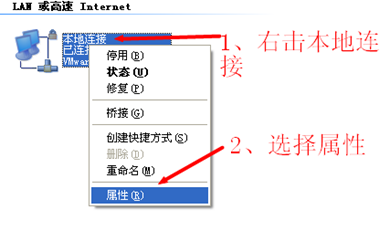 3、右击”本地连接”选择”属性”选择”Internet协议版本4(TCP/IPv4)”,并点击”属性”。