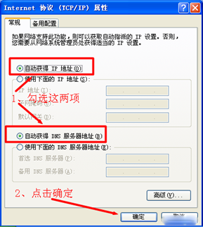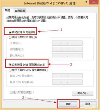 4、选择“自动获得IP地址”和“自动获得DNS服务器地址”---->点击“确定”。