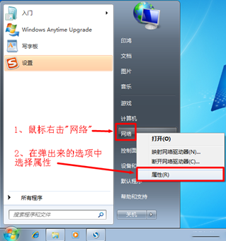3、右击“以太网”选择“属性”—>选择“Internet协议版本4(TCP/IPv4)”点击“属性”(或者双击“Internet协议版本4(TCP/IPv4)”)。